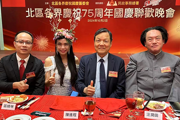 2024年10月2日,中国香港北区各界庆祝中华人民共和国成立75周年国庆联欢晚会在香港上水龙琛路33号龙丰花园平台1-2层盛大举行。此次晚会汇聚了香港北区各界人士,共同庆祝祖国的华诞,表达对祖国的深情厚谊和美好祝愿。广东省山东商会(深圳)副会长、粤港爱心义工联盟主席、香港信用担保联合会主席、深圳市聚爱会荣誉会长、世界五邑商会荣誉主席、国际潮商联谊会文化主席、广东惠州红棉慈善会荣誉主席汪润田主礼盛会。
