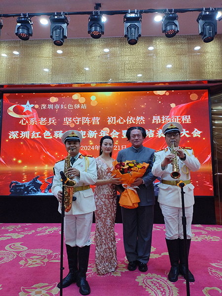 聘任仪式上,王兵华站长为常务副站长毛吕根、副秘书长黄有良颁发了聘任书,进一步壮大了深圳红色驿站的管理团队。随后,精彩的文艺节目将大会推向了高潮,由老战士军乐团演奏、深圳红色驿站合唱团合唱的《没有共产党就没有新中国》《歌唱祖国》拉开了演出序幕,紧接着,一系列由会员和军嫂们带来的歌曲、舞蹈等节目轮番上演,现场气氛热烈非凡,掌声、欢呼声此起彼伏。