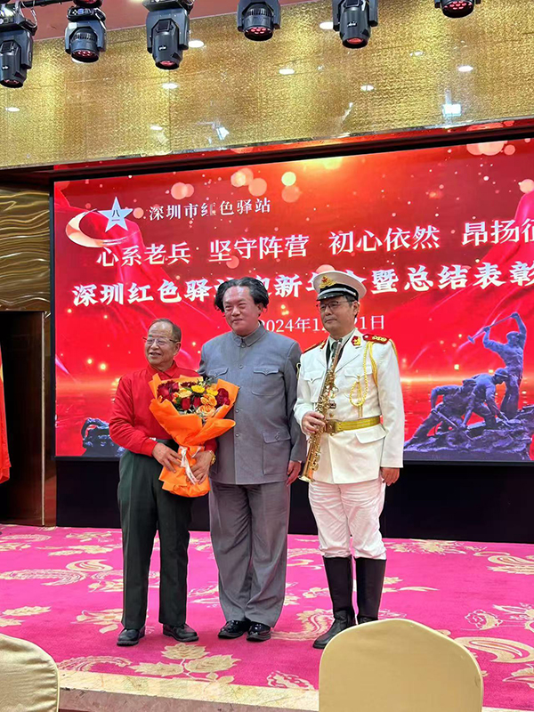 在表彰先进环节,深圳红色驿站秘书长吕胜利宣读了表彰决定,对在过去一年中表现突出的副站长彭世娥、冯忠兴、周欠玉、文正旺等先进工作者进行了表彰,并颁发了荣誉奖牌。此外,原基建工程兵老领导、航运集团党委书记吴富权还为深圳红色驿站站长王兵华颁发了“特别奉献奖”,以表彰他在推动红色文化传承和服务老兵方面所做出的杰出贡献。