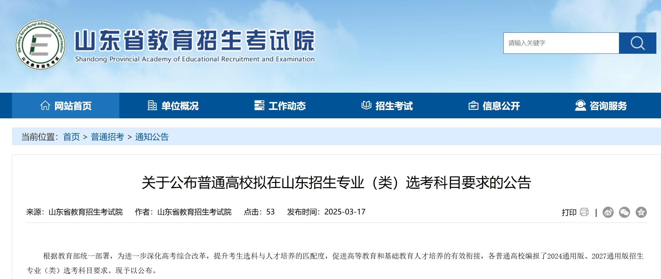 (来源:山东省教育招生考试院网站)