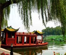 大明湖位于济南市区中心、旧城区北部,与趵突泉、千佛山并称济南三名胜。济南号称“泉城”,有泉水百余处,其中名泉七十二处。明湖即是由众泉汇流而成的天然湖泊。泉水由南岸流入,水满时从宋代修建于北岸的北水门流出,湖底由不透水的火成岩构成,因而湖水“恒雨不涨,久旱不涸”,常年保持较固定的水位。公园面积86公顷,其中湖面46公顷。湖上有历下亭、汇泉堂、湖心岛等大小岛屿六处…